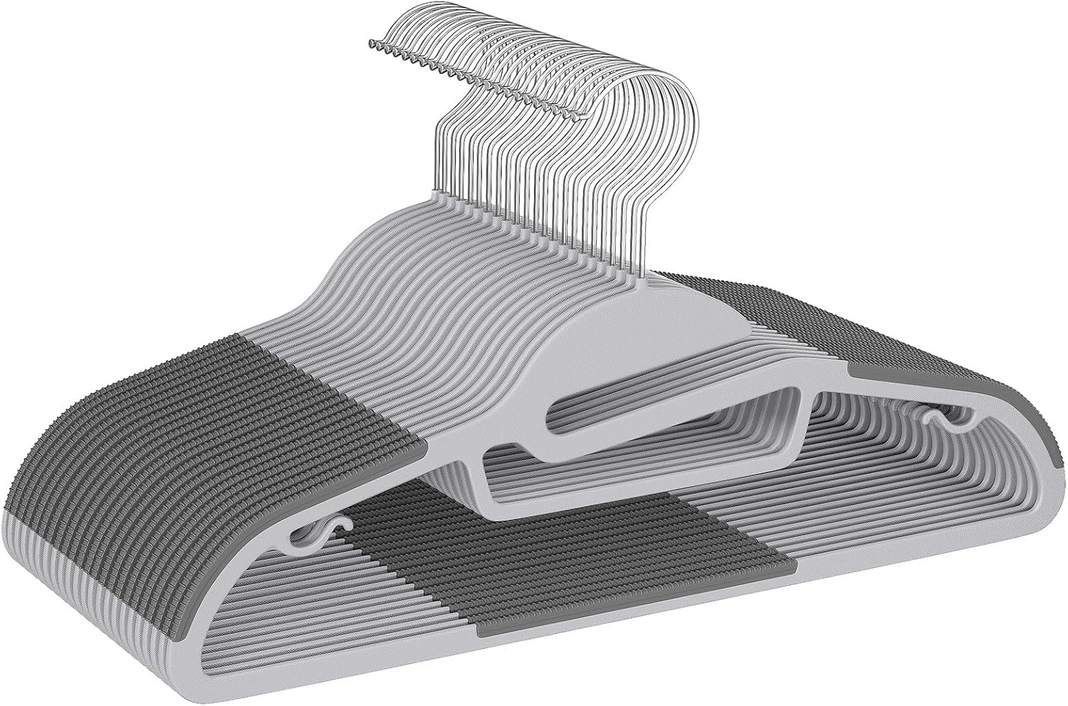 Plastic Hangers 50 Pack with Non-Slip Design,0.2 Inches Thick, 360°Swivel Hook Space Saving Organizer for Bedroom Closet,Shirts,Pants(Grey- S Shaped)